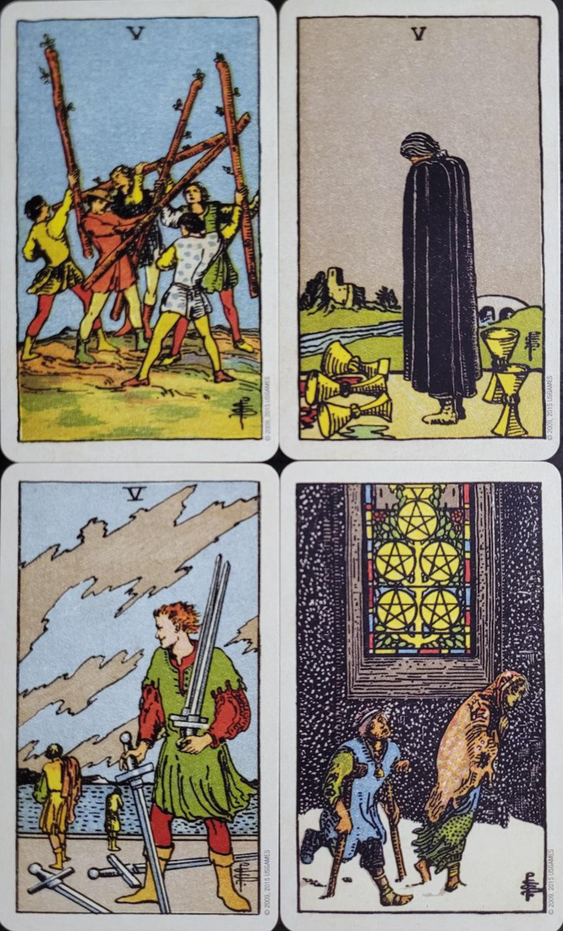 - Five of Swords(소드 5): 승패가 결정남, 의사소통의 불가, 매정함, 상처 뿐인 승리