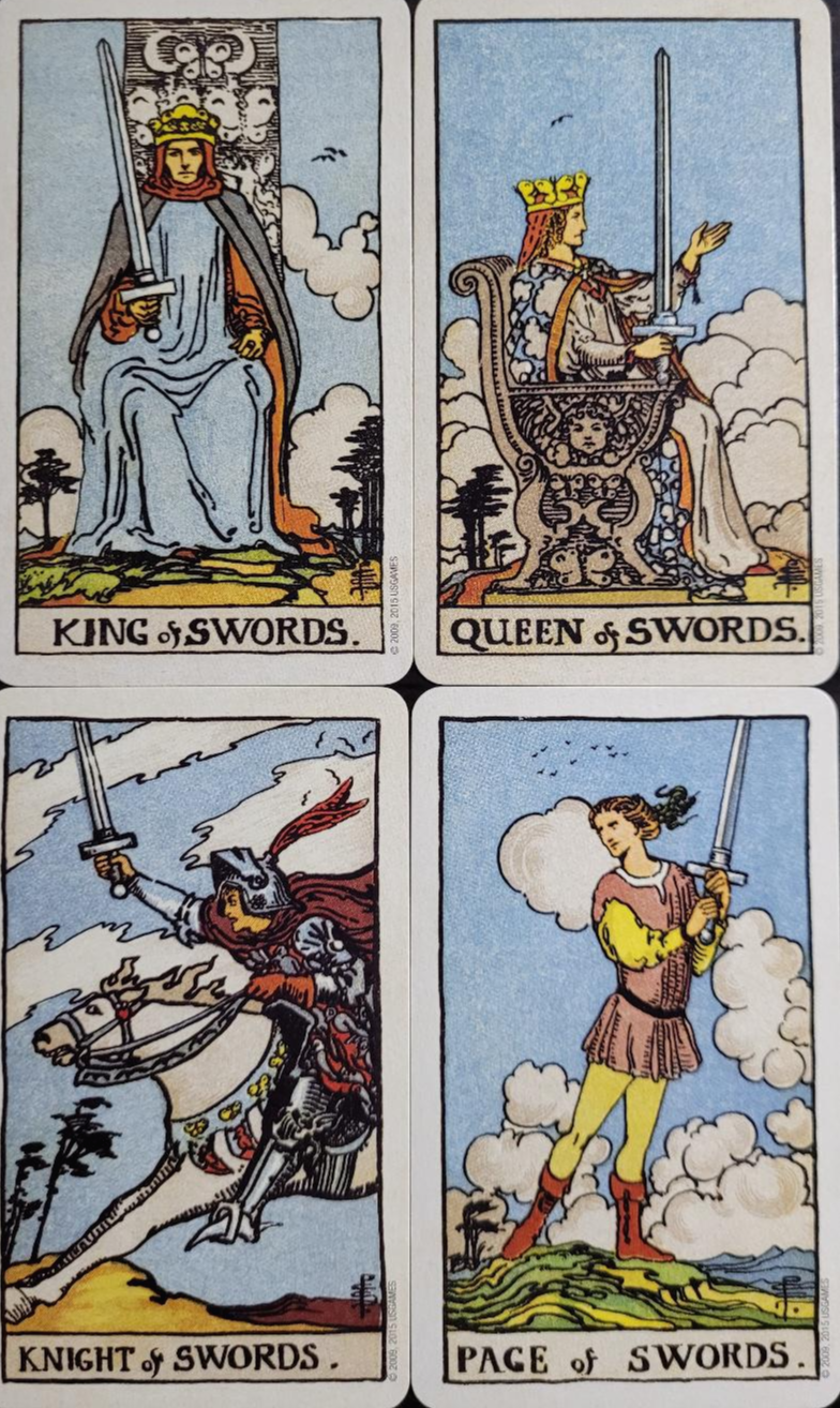 - Knight of Swords: 문제의 해결자, 예리함, 논리적임, 논쟁을 즐김